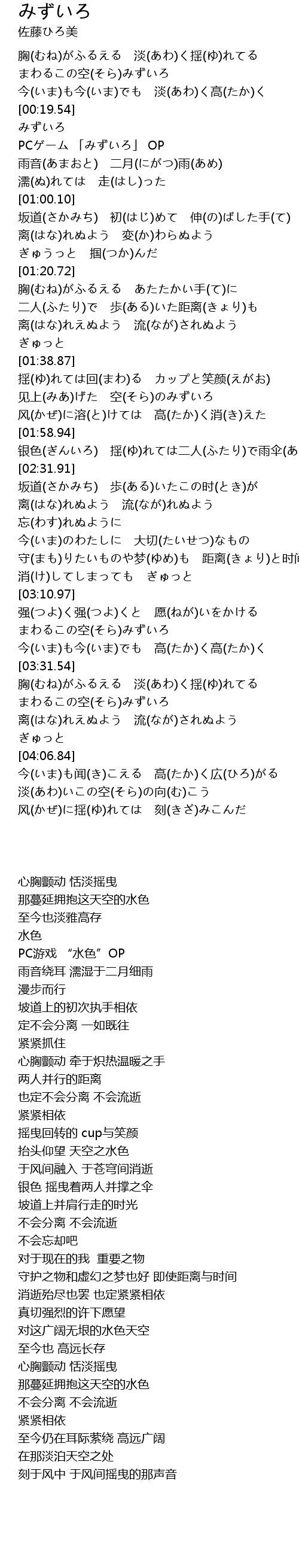 | [00:28.00] | PCゲーム 「みずいろ」 OP |