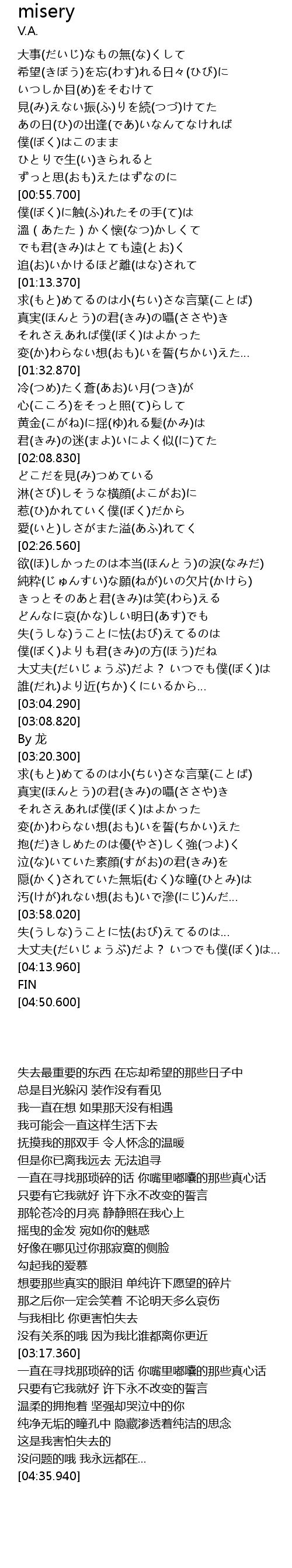 | [02:54.530] | 没有关系的哦 因为我比谁都离你更近 |