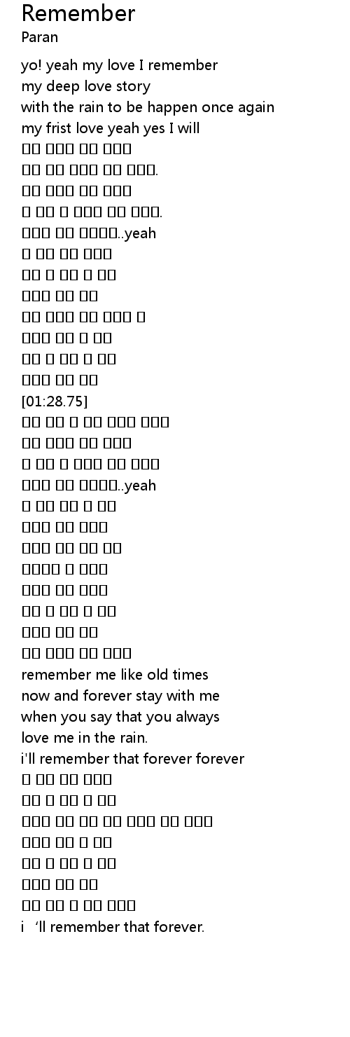 | [01:55.20] | 기억해 비와 첫사랑을..yeah |