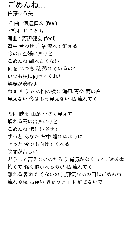 | [03:10.45] | どうして言えないのだろう 勇気がなくってごめんね |