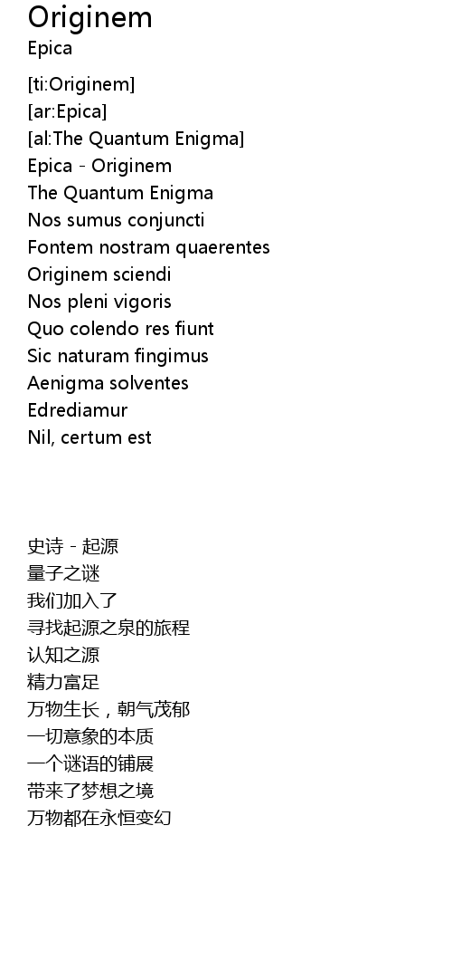 | [00:02.64] | Epica - Originem |