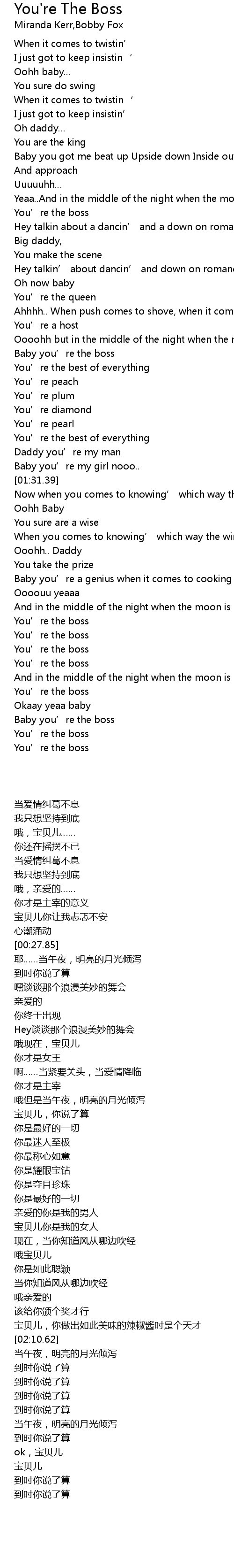 | [02:36.64] | Baby you’re the boss |