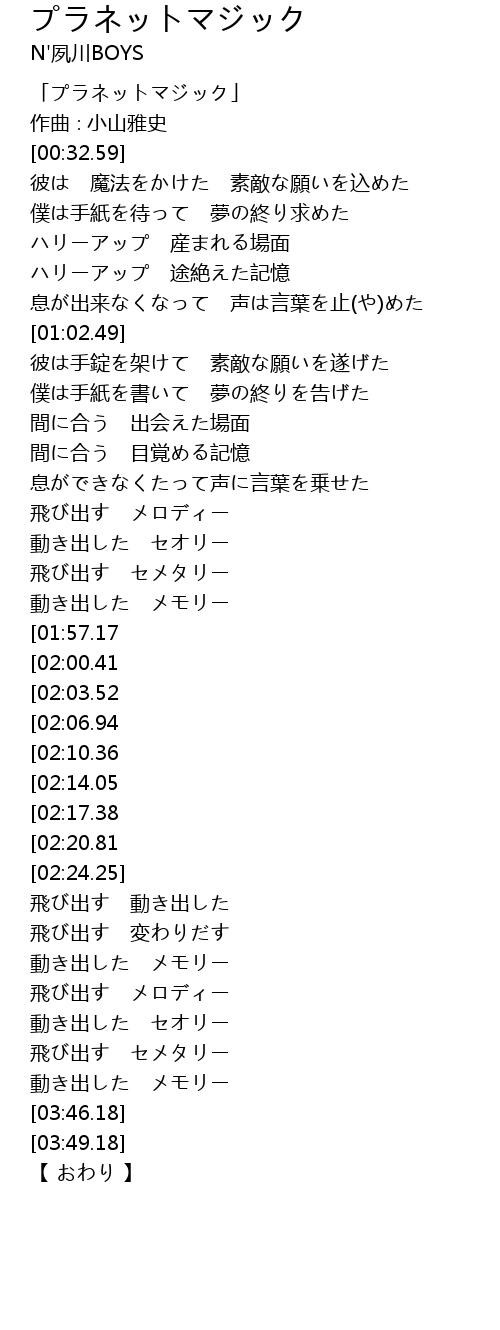 | [00:01.59] | 「プラネットマジック」 |