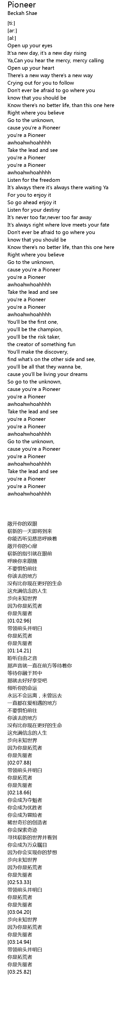 cause you're a Pioneer |