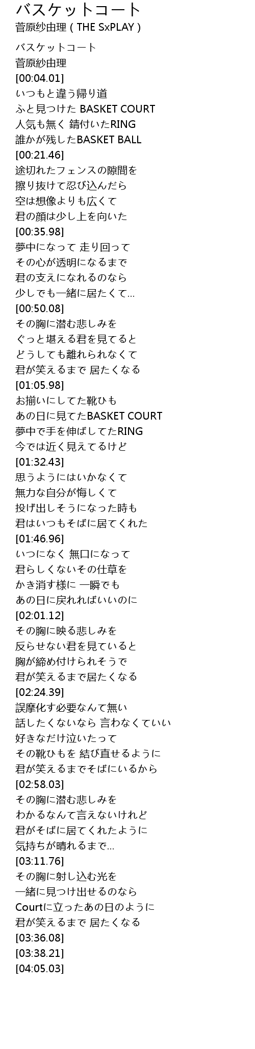 | [00:10.75] | ふと見つけた BASKET COURT |