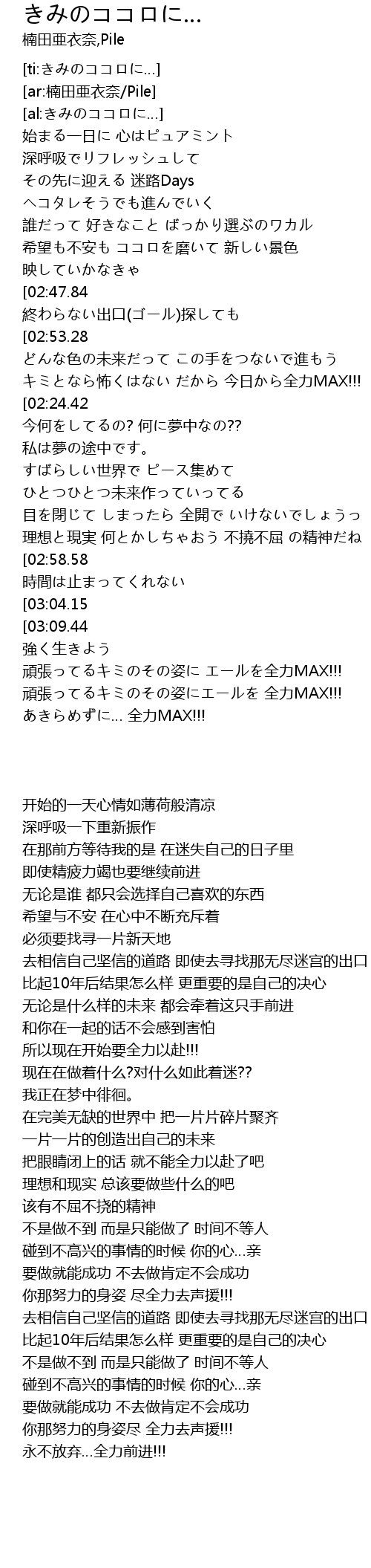| [03:21.36] | あきらめずに… 全力MAX!!! |