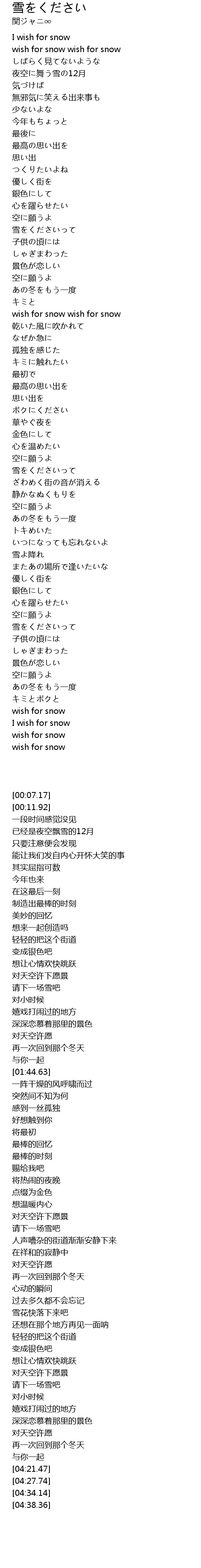 | [00:28.55] | 夜空に舞う雪の12月 |