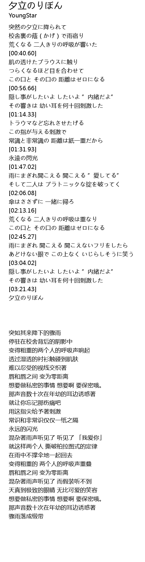 | [02:39.01] | この口と その口の 距離はゼロになる |