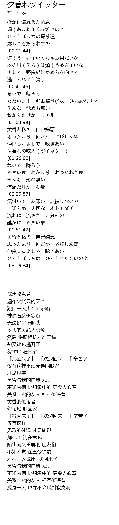 | [01:20.10] | 夕暮れの呟人(ツイッター) |