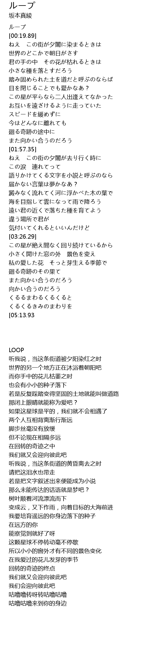 | [01:16.81] | この星が平らなら二人出逢えてなかった |