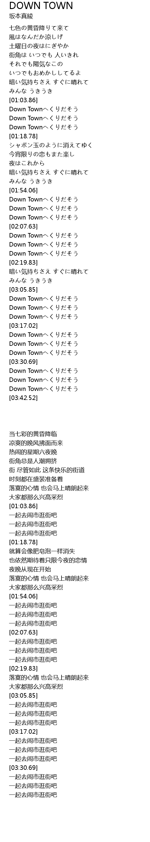 | [00:33.75] | 街角は いつでも 人いきれ |