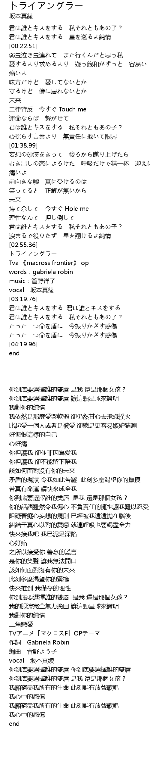 | [03:05.14] | Tva 《macross frontier》 op |