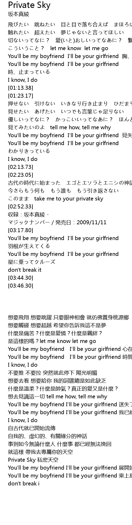 | [02:54.33] | Private Sky 私密天空 |