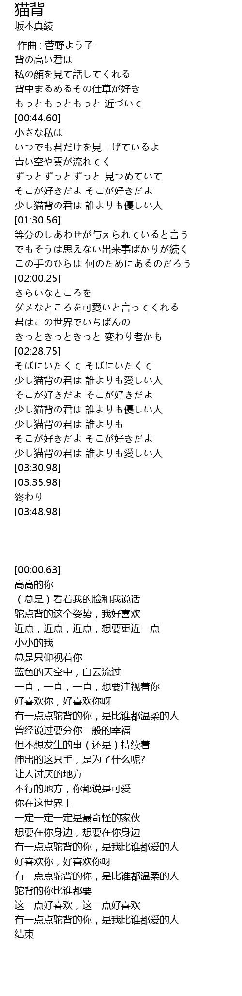| [02:36.19] | 少し猫背の君は 誰よりも愛しい人 |