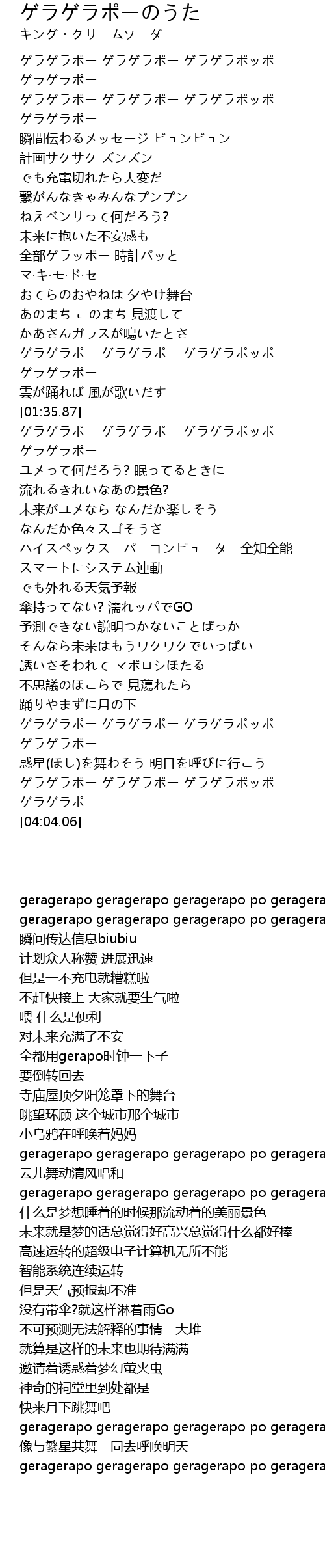 | [03:25.71] | geragerapo geragerapo geragerapo po geragerapo |