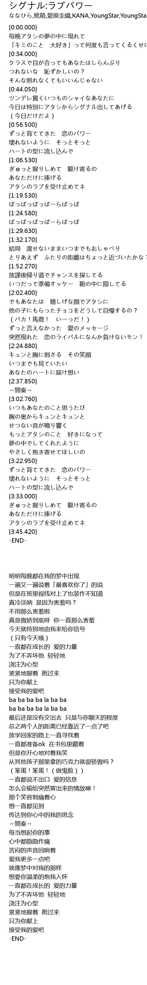 | [0:56.810] | ずっと育ててきた 恋のパワー |