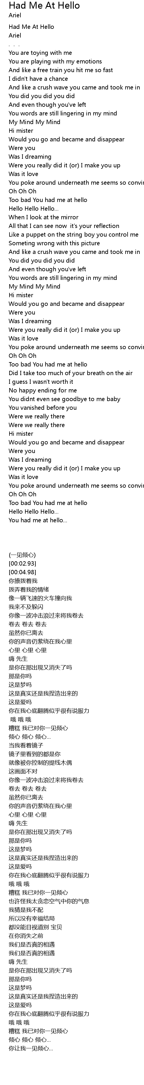 Had Me At Hello |