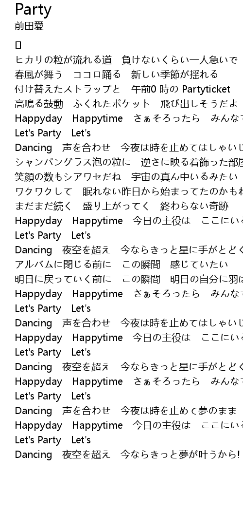 | [03:29.141] | Happyday Happytime 今日の主役は ここにいるみんな一人ひとり |