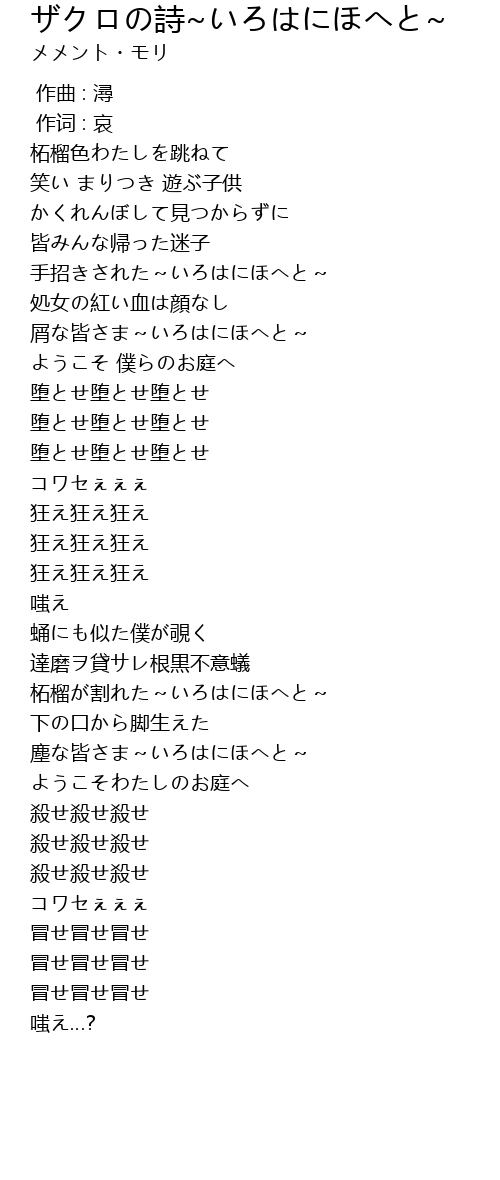 | 歌曲 | ザクロの詩~いろはにほへと~ |