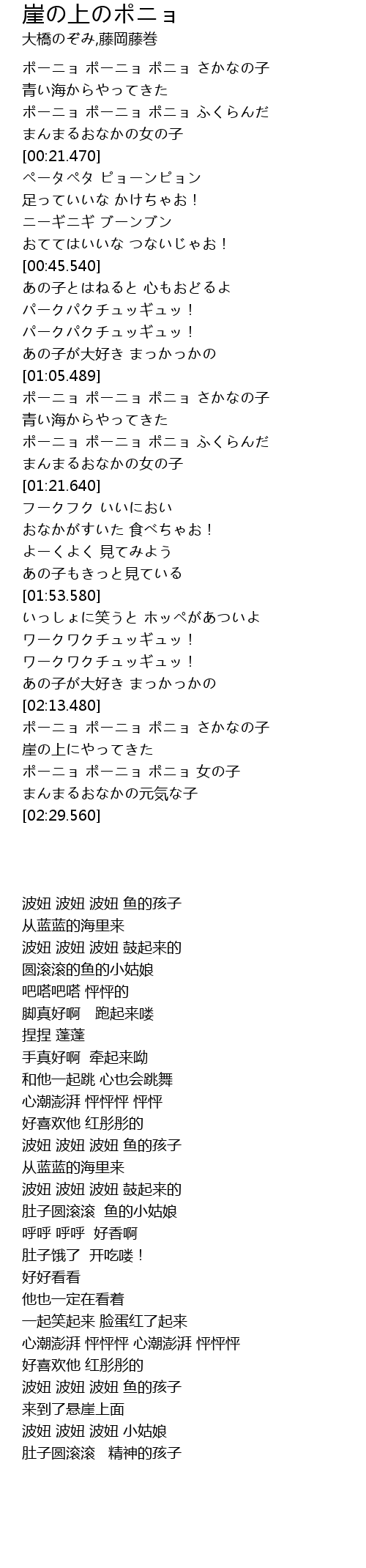 | [02:21.460] | ポーニョ ポーニョ ポニョ 女の子 |