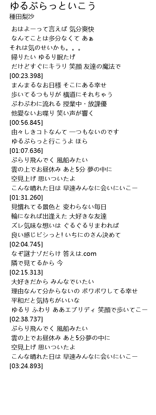 | [01:02.592] | ゆるぶらっと行こうよ ほら |