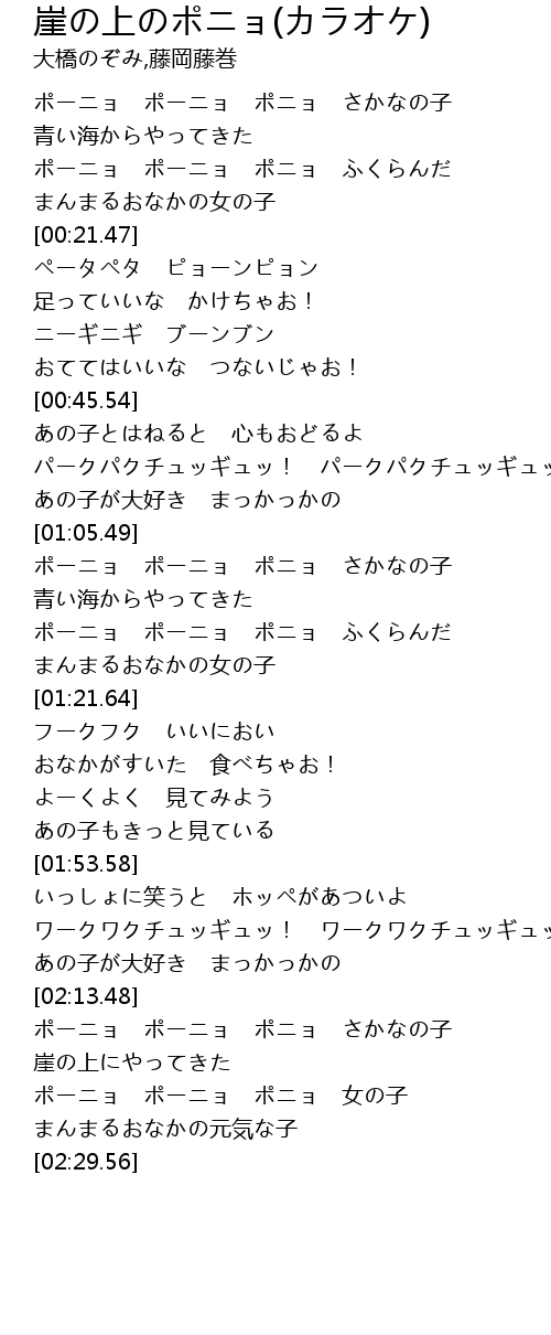 | [02:21.46] | ポーニョ ポーニョ ポニョ 女の子 |