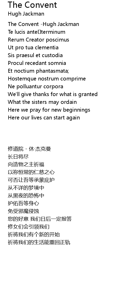 | [00:00.590] | The Convent -Hugh Jackman |