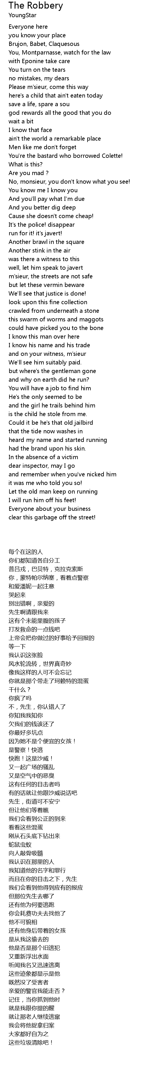 | [00:07.844] | You, Montparnasse, watch for the law |