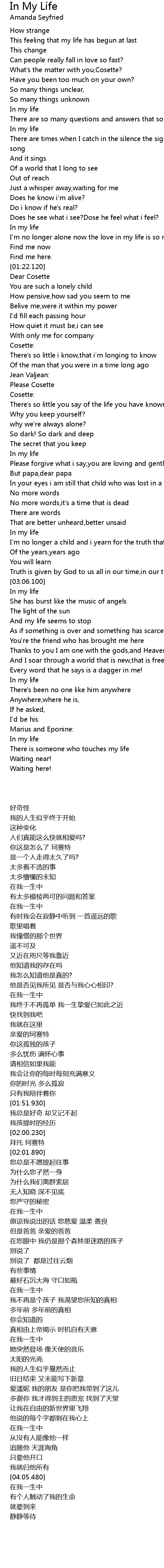 In my life |