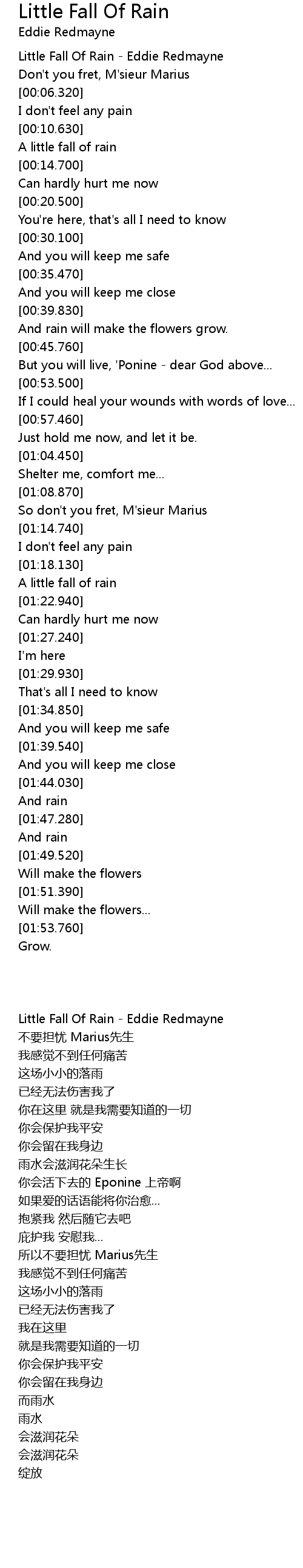 Little Fall Of Rain - Eddie Redmayne |