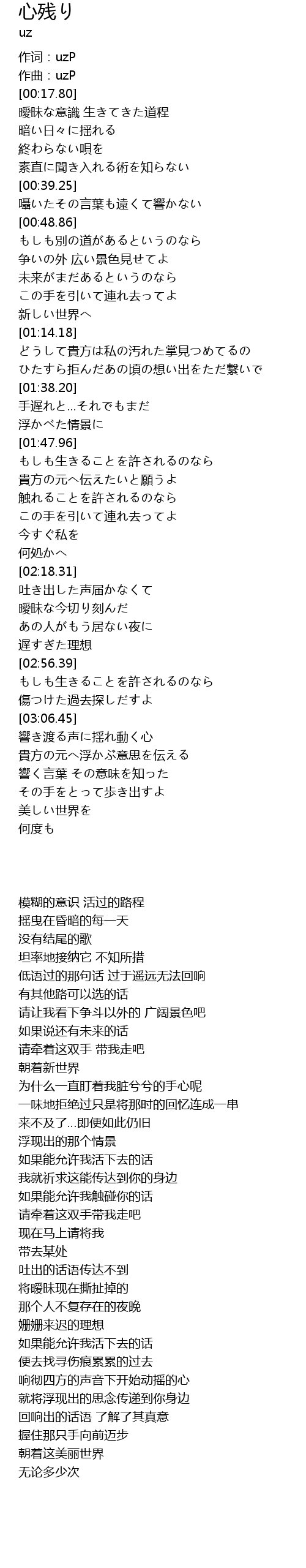 | [00:39.35] | 囁いたその言葉も遠くて響かない |