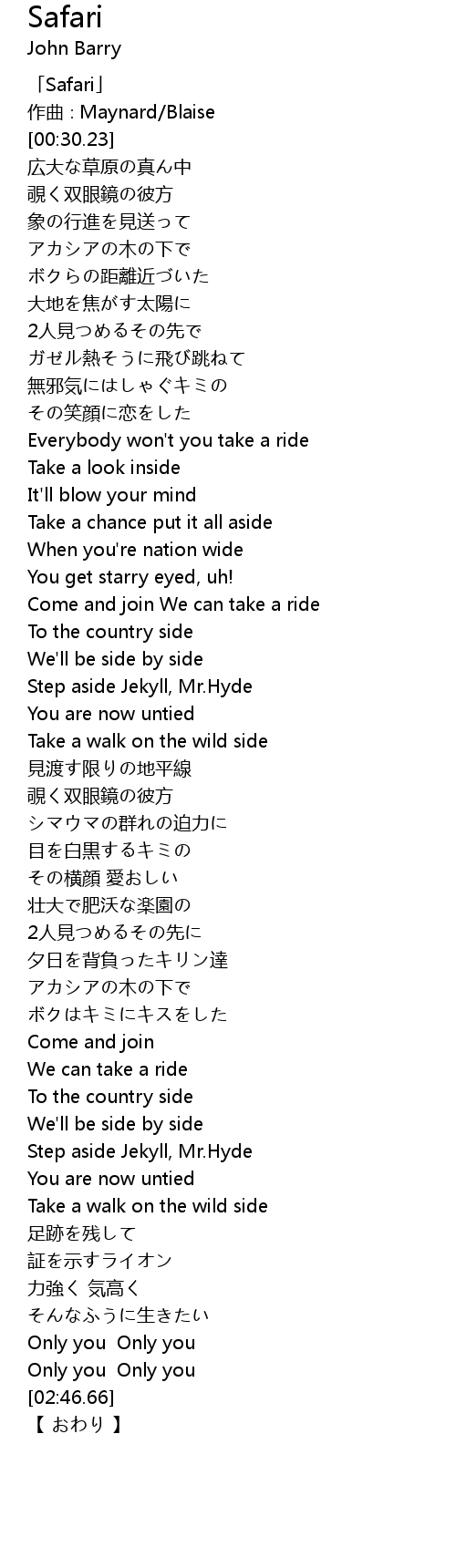 | [00:01.23] | 「Safari」 |
