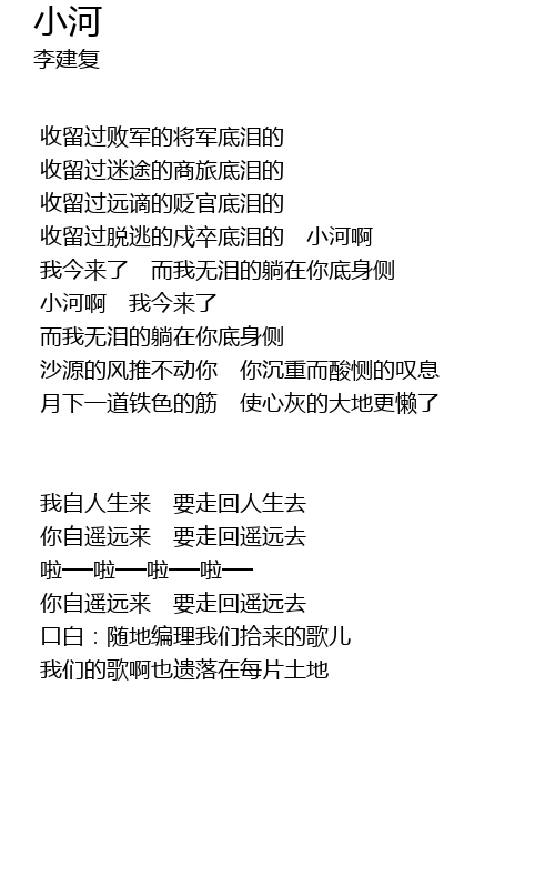 | 收留过脱逃的戍卒底泪的 小河啊 | |