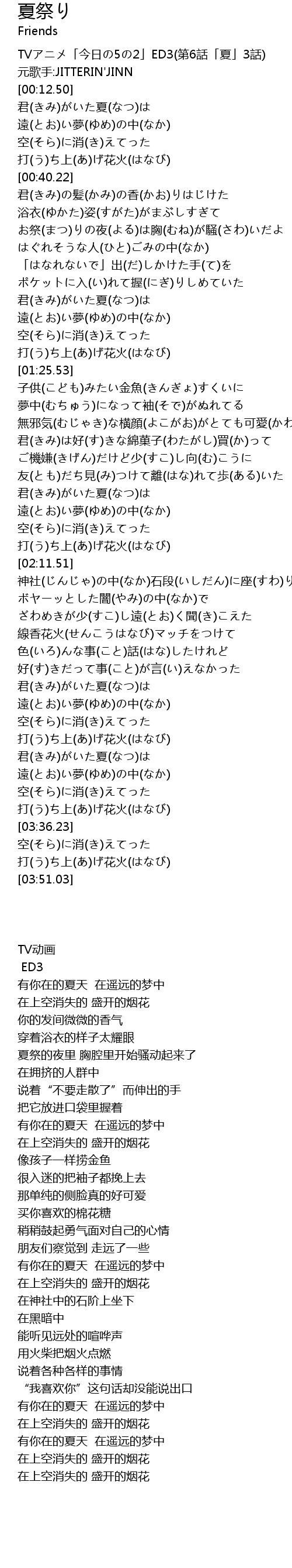 | [00:50.67] | 夏祭的夜里 胸腔里开始骚动起来了 |