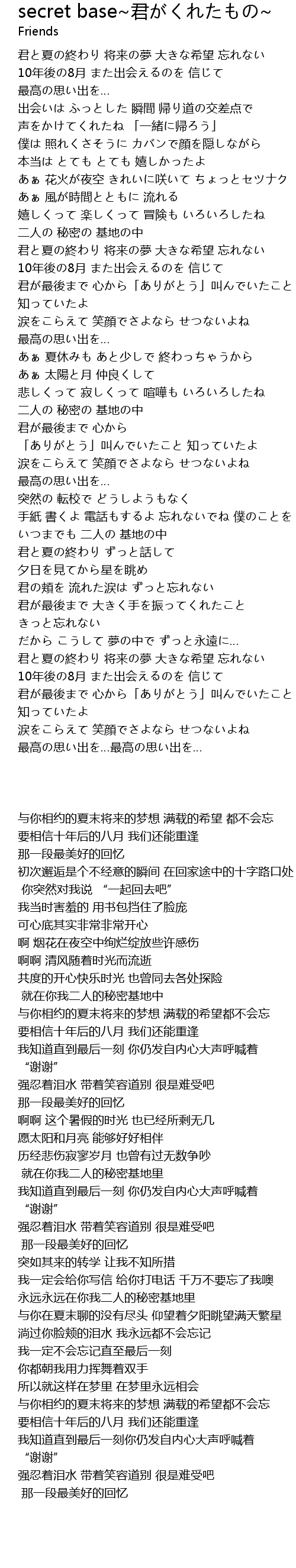 | [00:19.79] | 10年後の8月 また出会えるのを 信じて |