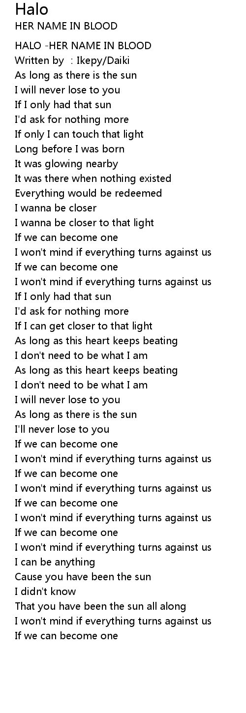 | [00:00.00] | HALO -HER NAME IN BLOOD |