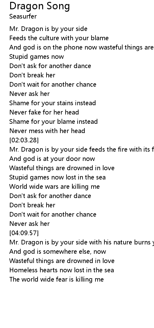 | [04:18.98] | Mr. Dragon is by your side with his nature burns your name |