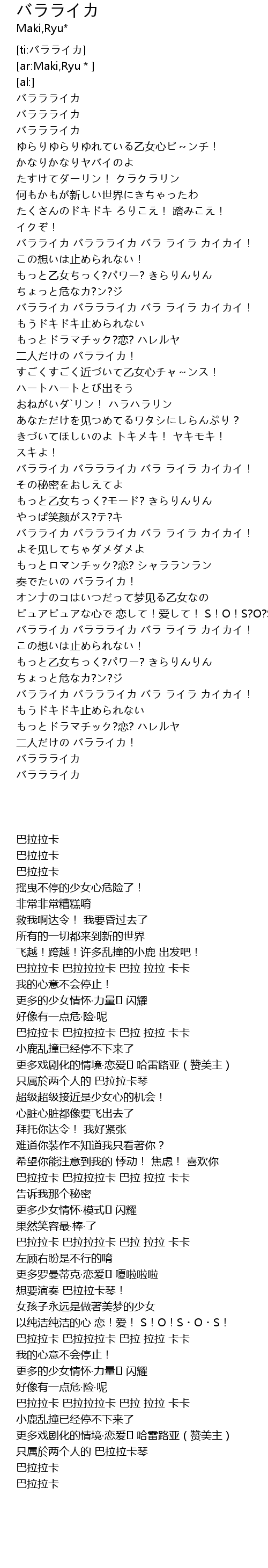 | [03:29.57] | 巴拉拉卡 巴拉拉拉卡 巴拉 拉拉 卡卡 |