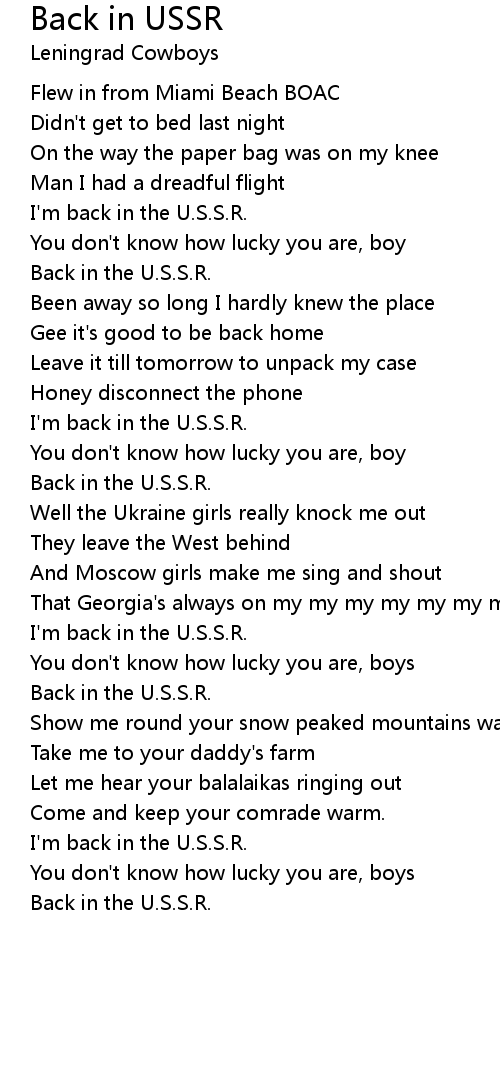 I'm back in the U.S.S.R. |