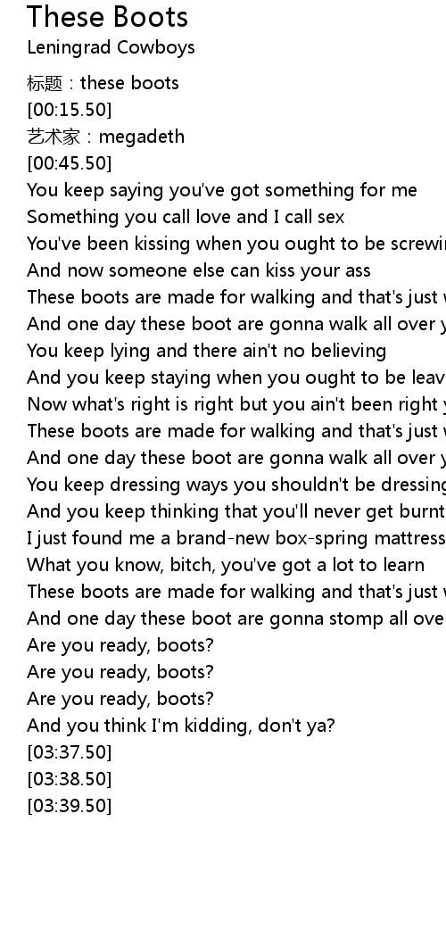 | [02:31.50] | These boots are made for walking and that' s just what they' ll do |