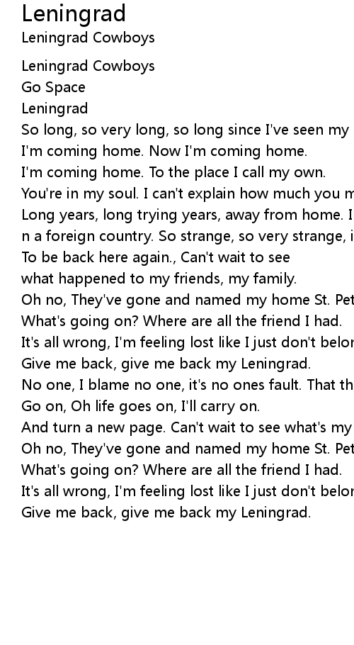 Give me back, give me back my Leningrad. |