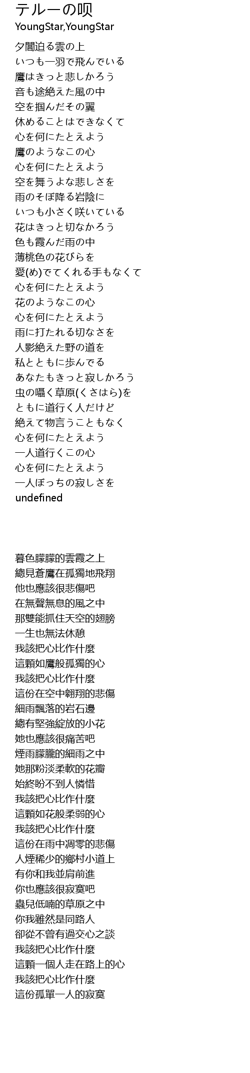| [00:12.18] | 鷹はきっと悲しかろう |