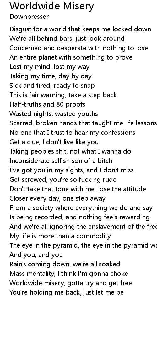 Worldwide misery, gotta try and get free |