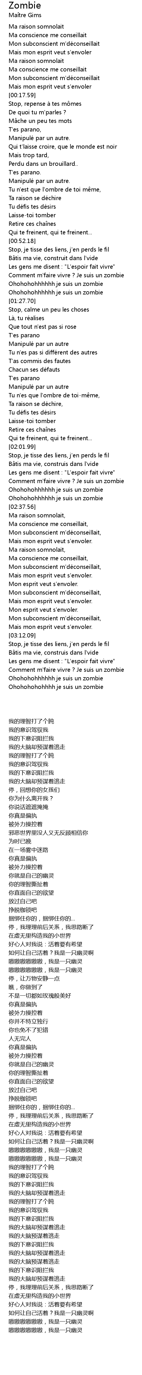 | [01:12.46] | Ohohohohhhhhh je suis un zombie |