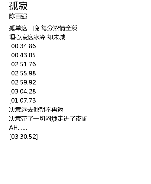 | [03:20.69][03:04.28][01:53.91][01:02.20] | 无尽陌路岁月漫漫 |