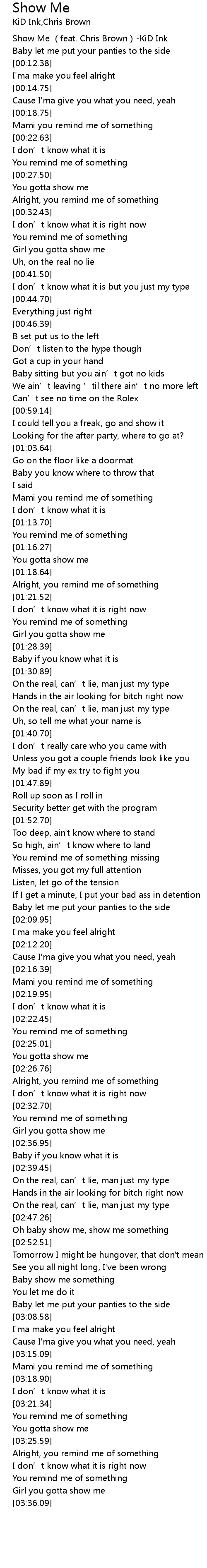 | [00:00.88] | Show Me feat. Chris Brown KiD Ink |