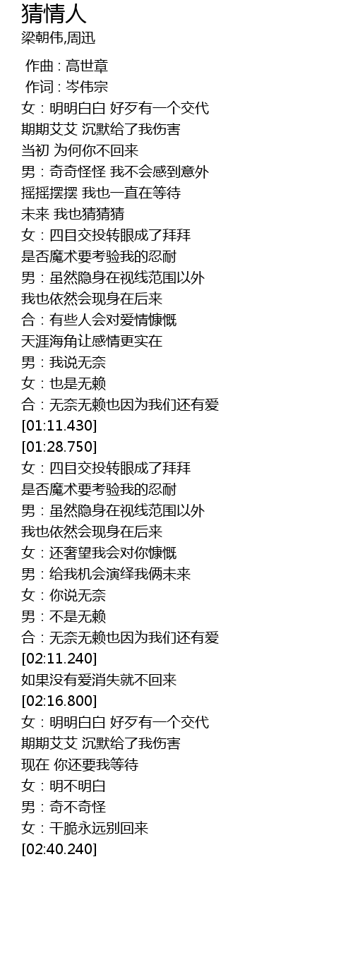 | [01:30.310] | 女:四目交投转眼成了拜拜 |