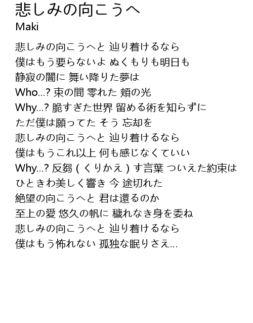 | 歌曲 | 悲しみの向こうへ |