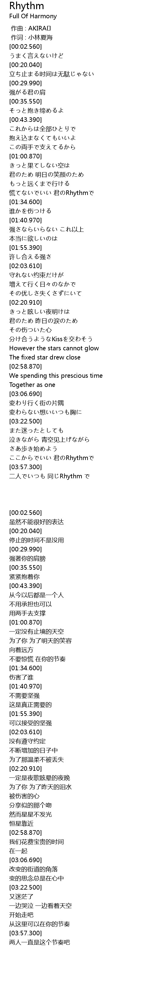 | [04:02.710] | 二人でいつも 同じRhythm で |