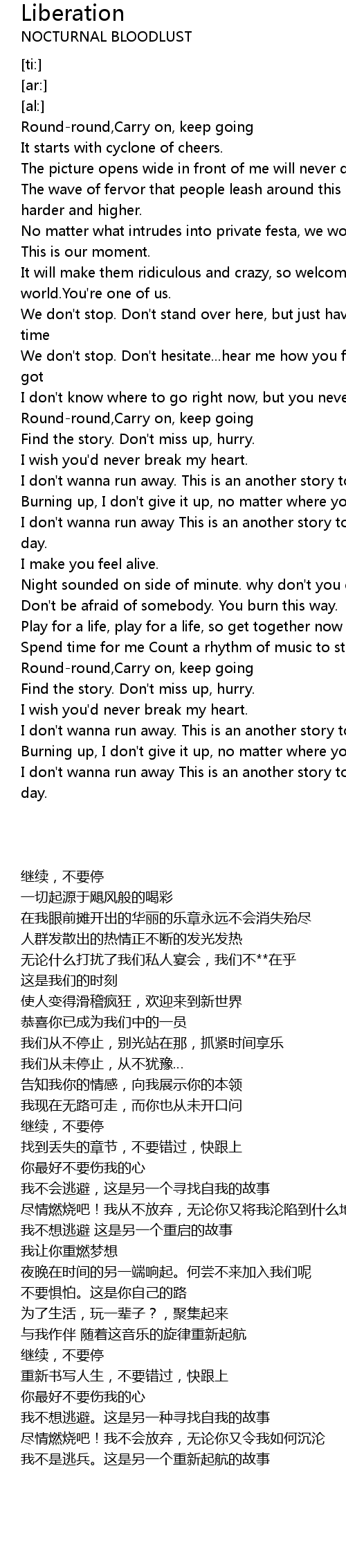 I don't wanna run away This is an another story to start a brand-new day. |